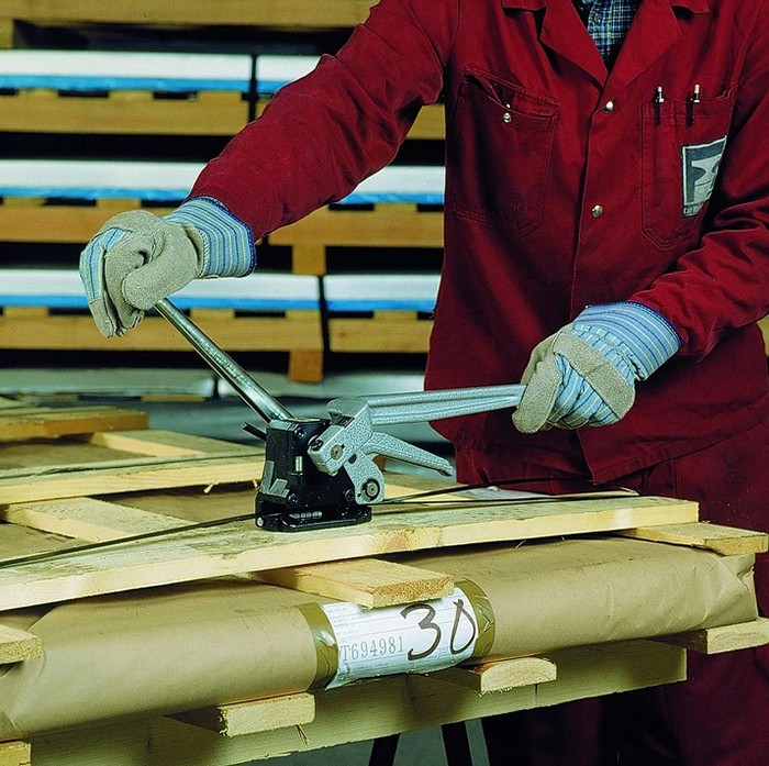 · 免用鐵扣,采用三點上下沖模咬合,利用上下沖模機構將鋼帶打出三個陰陽扣互相咬合,抗斷裂強度可達85%,相較傳統(tǒng)鐵扣結合更加強韌。